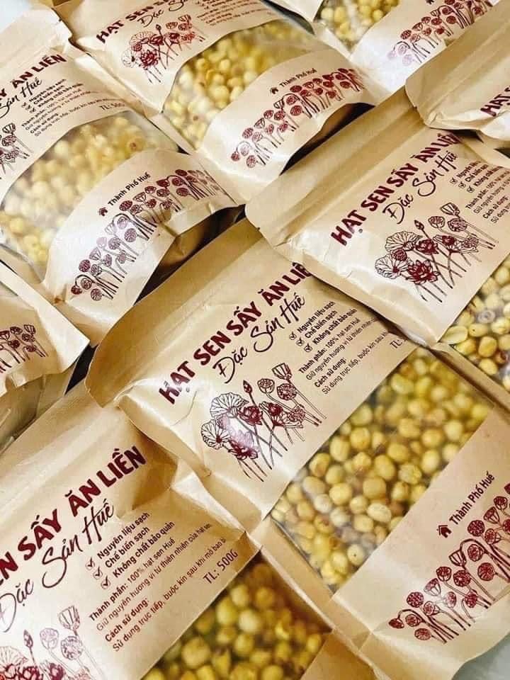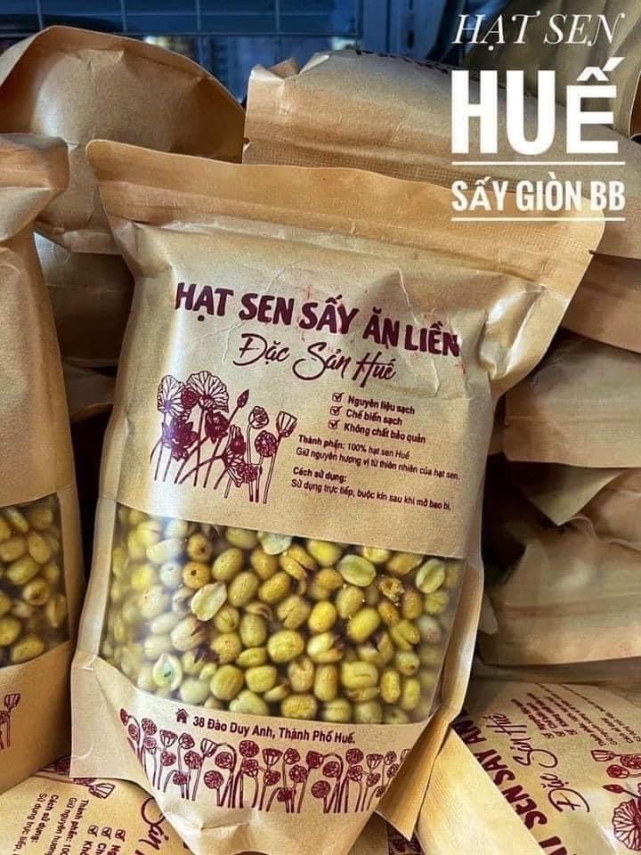 👉Hạt sen Huế sấy giòn ăn liền được chọn từ 100% hạt sen tươi ,hạt to đều, ăn giòn rụm, thơm ngon và không bị ngán.